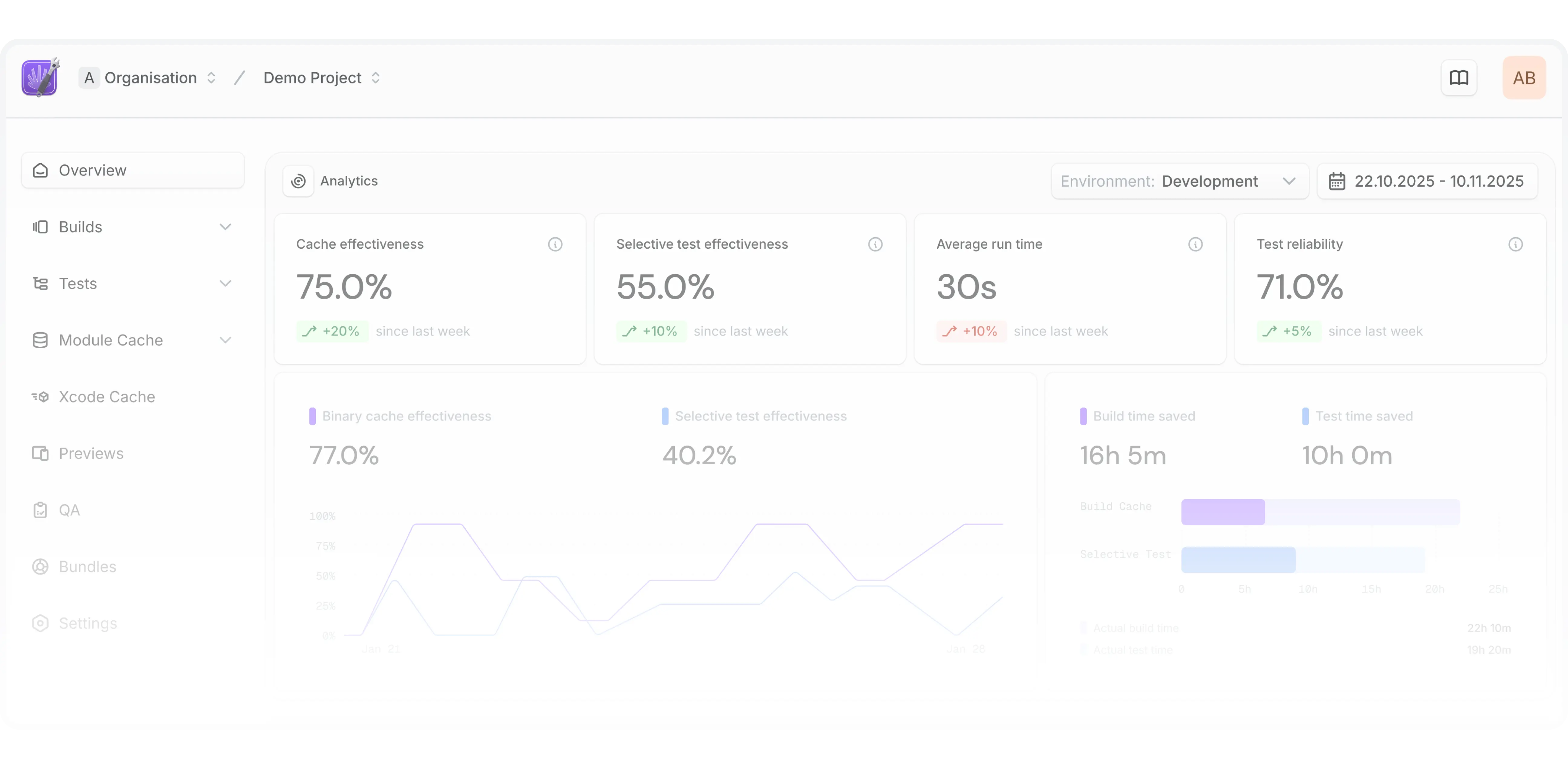 Speeds up builds by reusing compiled binaries, cutting down build times in both local development and CI.