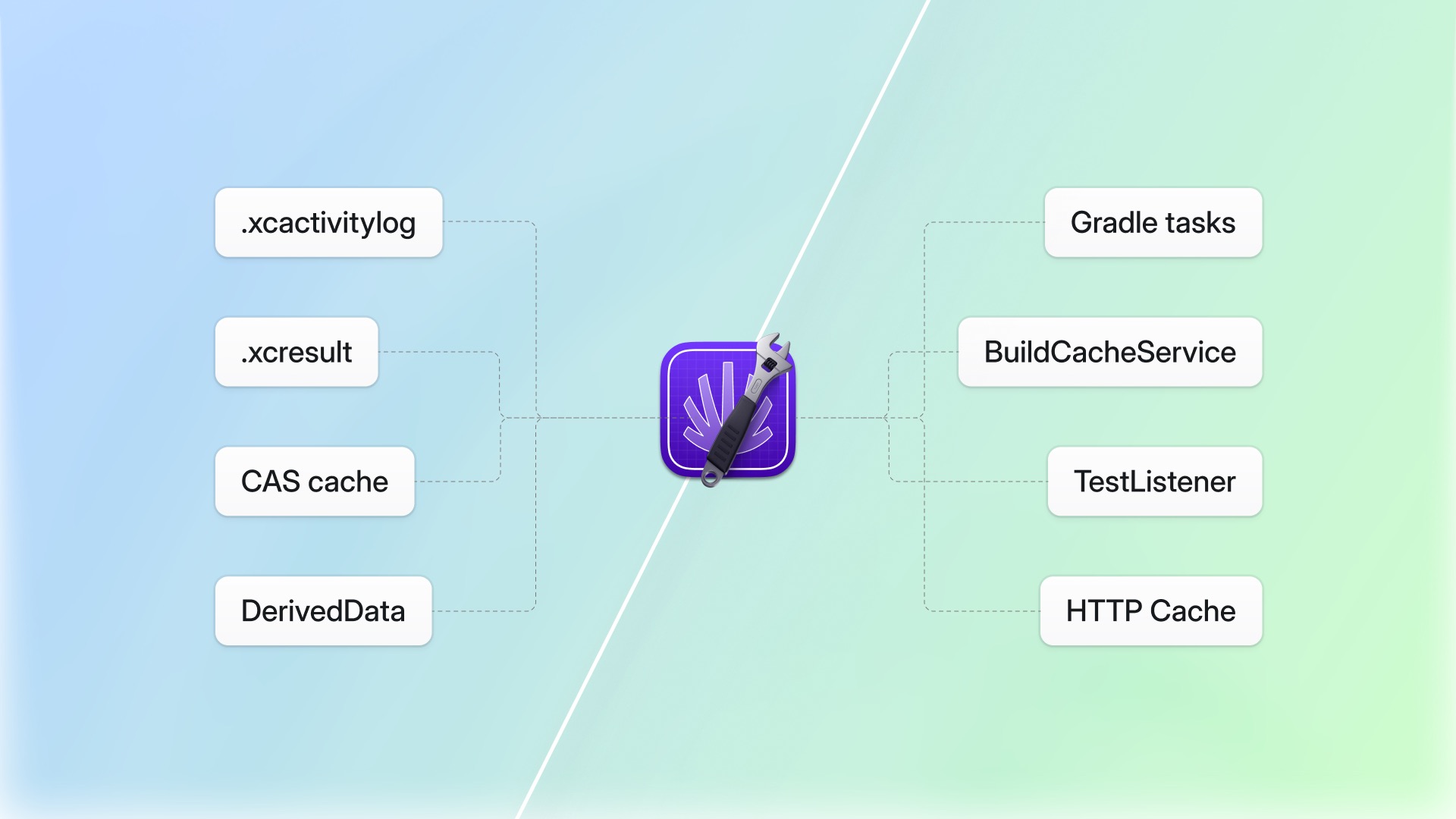 We have been doing this for Xcode for years. Understanding activity logs, result bundles, compilation graphs, the entire landscape of how Apple's toolchain turns source files into apps. Being close to the mobile ecosystem, jumping to Android through Gradle was a natural next step. And we were genuinely struck by how the work turned out. We shipped remote build caching, build insights, test insights, flaky test detection, bundle analysis, and previews for Gradle in about three weeks. Part of that speed came from features like bundle analysis and test insights being largely build-system-agnostic: once the data is extracted, it boils down to the same structures regardless of whether it came from Xcode or Gradle.